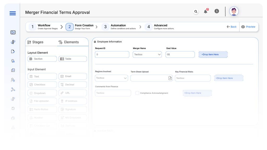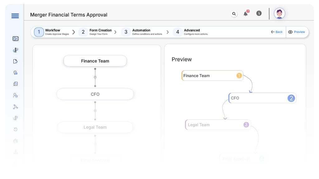 Approving financial terms during a corporate merger is a highly sensitive and compliance-driven process. Without structured automation, miscommunication and delays are common across legal, finance, and executive teams. A report by Deloitte found that 43% of M&A deals suffer from delayed financial approvals due to inconsistent workflows.