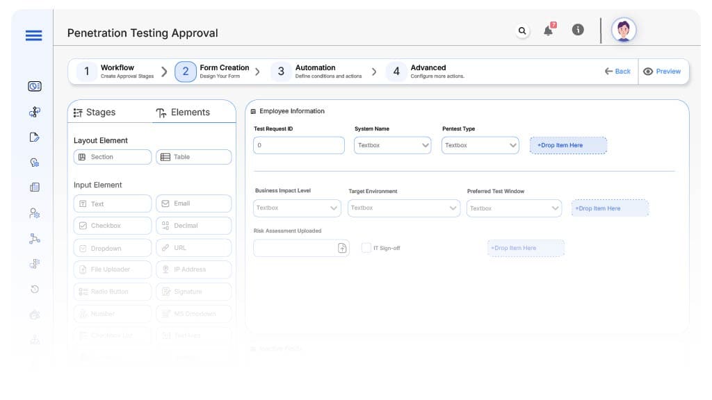 - Automated Risk Categorization: Upon submission, Cflow categorizes each request based on asset type, business impact, and data sensitivity. High-risk tests trigger executive oversight automatically. This ensures proper risk mitigation strategies are applied before execution.